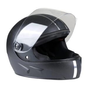 Visor:- Scratch resistant and UV resistant. Visor in optical polycarbonate, it is equipped with a second sun visor which is made from tinted polycarbonate, Quick release visor mechanism, facilitates smooth and easy visor changes.